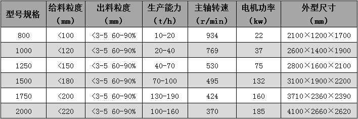 復(fù)合式破碎機(jī)類型有:800型,1000型,1250型,1500型,1750型,2000型等。