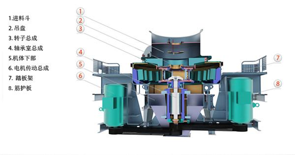 9、葉輪及渦動破碎腔內(nèi)的物料自襯大幅度減少磨損件費用和維修工作量。在生產(chǎn)過程中,石料能形成保護(hù)底層,機(jī)身無磨損,經(jīng)久耐用。